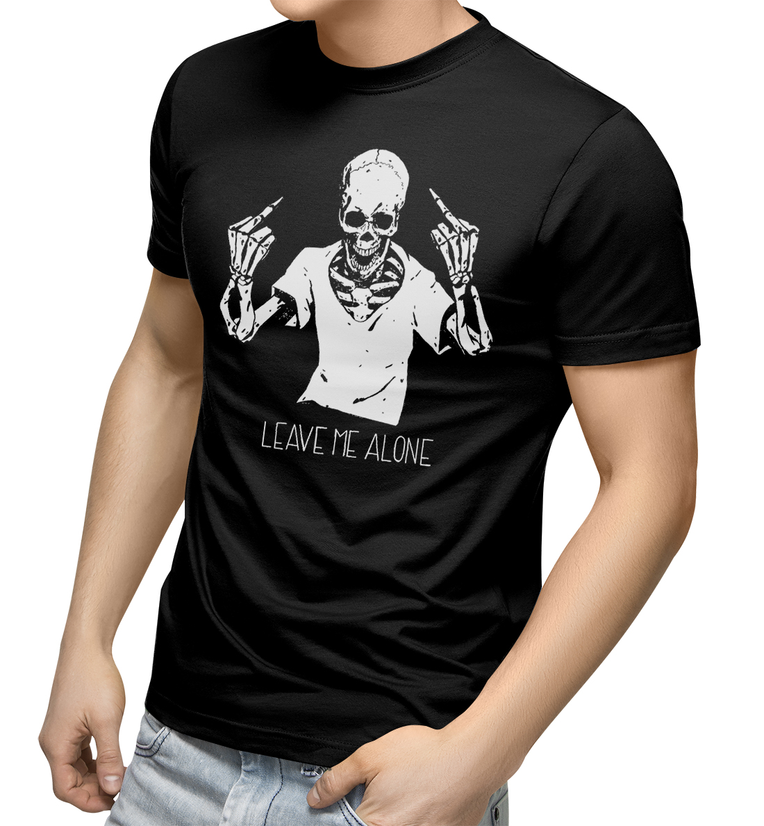 Leave Me Alone T Shirt Black Skeleton