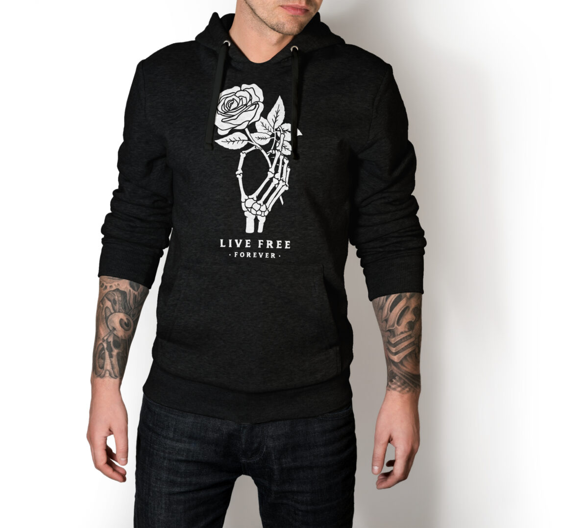 Life Free Forever Hand Sceleton T Hoddie Sweatshirt Unisexs Love The Rose