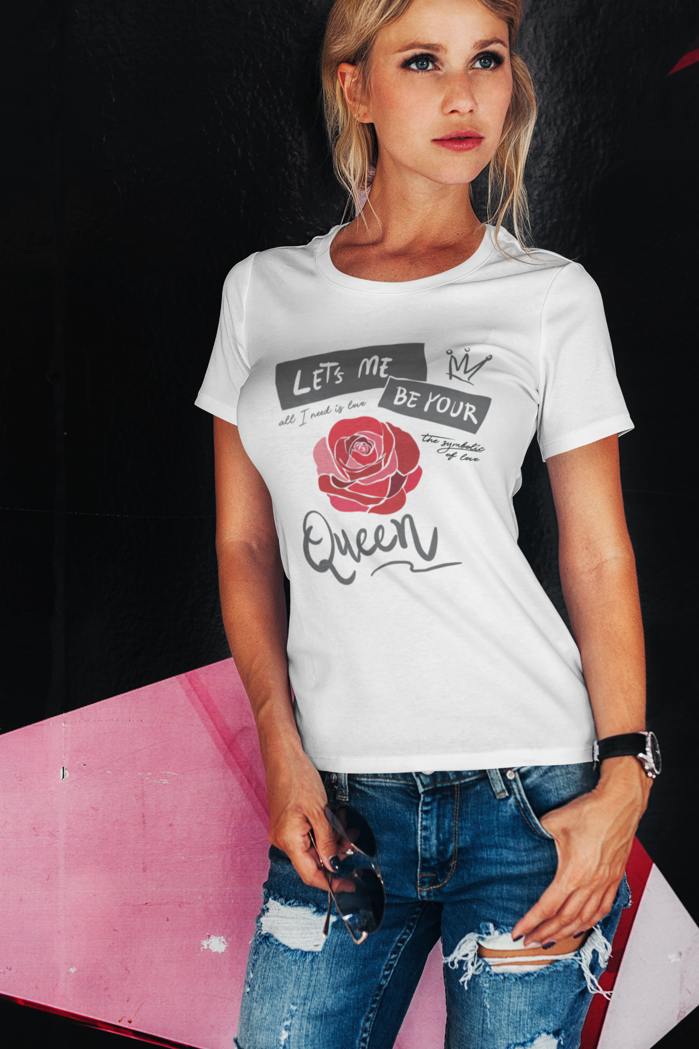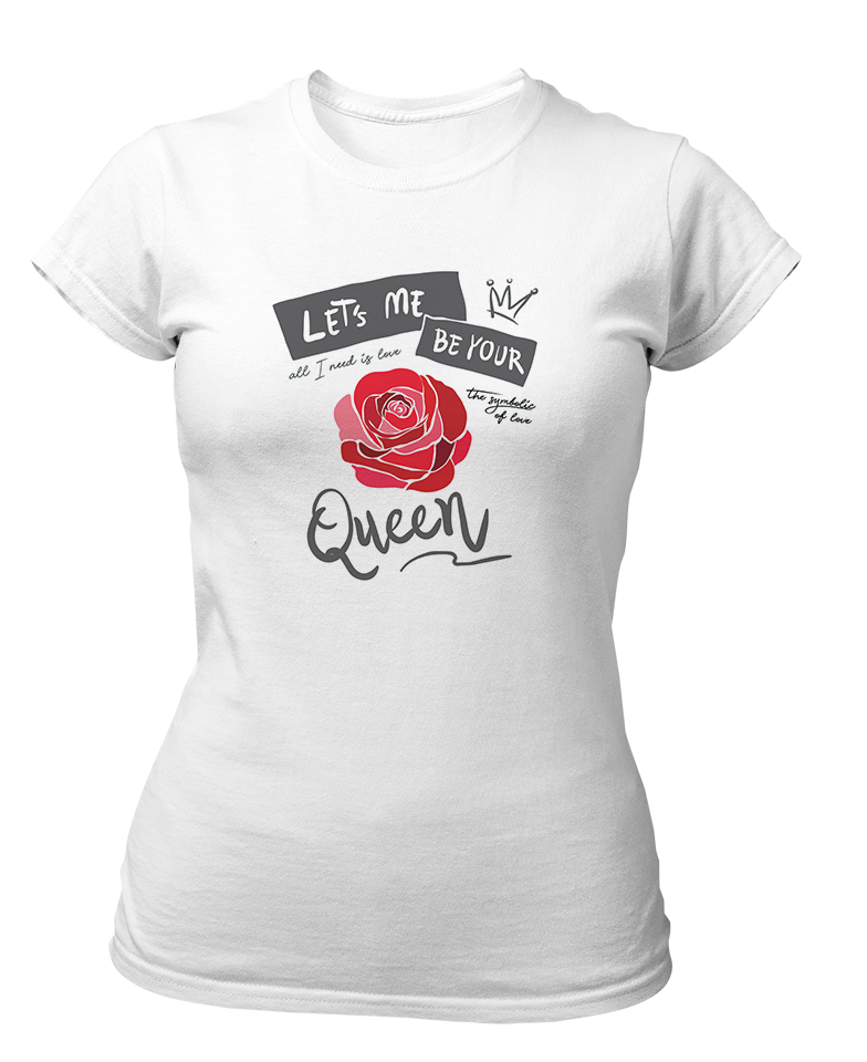 Queen Tshirt for Women Let`s me Be Your Love Rose White