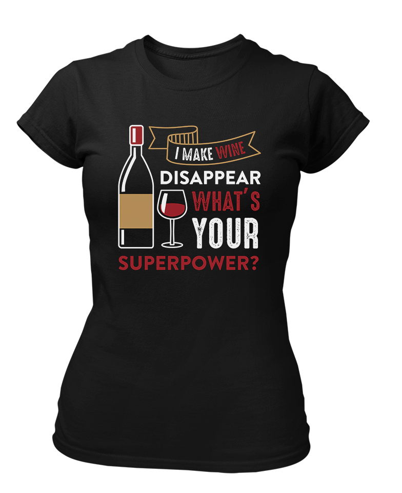 Superpower Black Tshirt for Women Wine Ladie Disappear Slogan Text